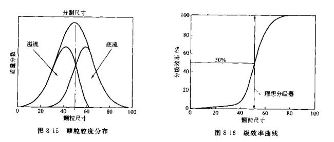 旋流器的分离效率,其含义为在分离过程中,若某一粒度的颗粒进入底流和溢流的概率各为50%,则该颗粒的粒度就是二50.