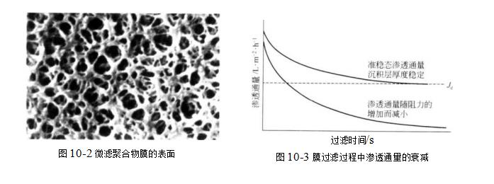 膜过滤和传统过滤有许多相似之处,然而,在两者所使用的术语上却有明显不同:在膜过滤中过滤称作“渗透”,过滤的剩余料浆或悬浮液称作“浓缩液”,而渗透过滤速度称作“渗透通量”.