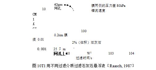 在过滤质量浓度大于约1%的高浓度料浆时,如果膜的实际开孔足够小,在其表面可能形成一个固体颗粒沉积层,或者,在膜表面形成一个组合的沉积过滤层.