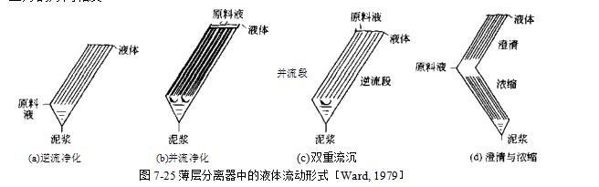 低密度的泥浆(如金属氢氧化物)的沉降过程,最好在并流结构装置中进行,以便逆流运行能在靠近的板空间内有更高的表面装载能力.