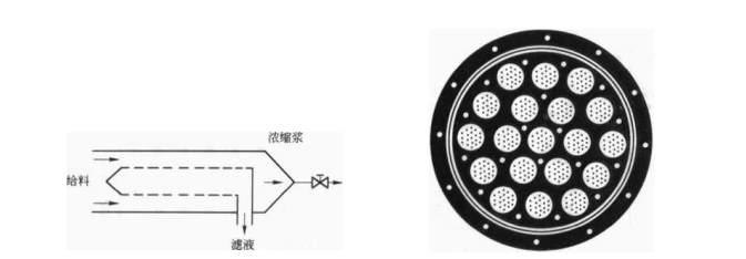 由高速流动的稀薄滤浆所产生的扫流剪切力将沉积在滤管外壁上的固体颗粒扫流掉从而可获得近乎恒定的滤速.