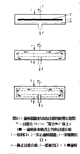 过滤介质固定不动,具有任意形状的实心旋转体靠近介质旋转,加入机壳内的悬浮液由旋转体带动,在介质表面上产生了很高的速度梯度.