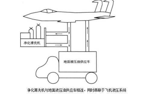 将净化清洗机直接与飞机液压油箱连接,同样方法也可用于其他液压油输送车油箱和地面使用的试验台油箱.