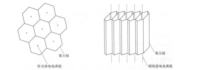 静电空气过滤器通常由电离极(正极)和集尘极(负极)两部分组成,电离极一般为针尖或者圆线,集尘极则为圆筒形或板式结构.