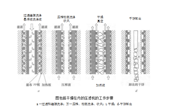 该新型压滤机的结构类似于有隔膜压榨板的标准压滤机工作步骤也类似.