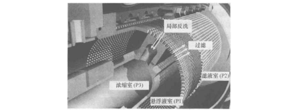 过滤介质可以是金属纤维织物,也可是合成纤维织物,安装在带孔转鼓的外表面上,由织物的内部或表面来截留不同尺寸的颗粒.