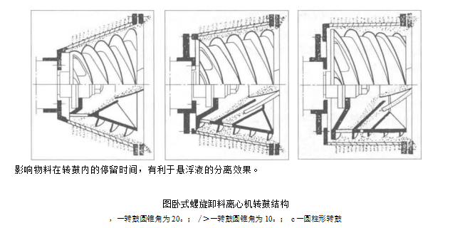 卧式螺旋卸料过滤离心机的工作原理与立式相同其转鼓结构分为3种类型如各种类型的转鼓都有相应的适用范围.