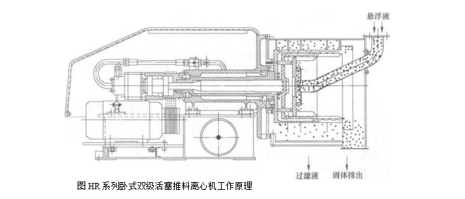 HR系列卧式双级活塞离心机基本结构离心机主要由泵组合推料机构机座轴承组合转鼓筛网机壳及电控箱等部件组成.