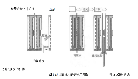洗布洗涤及振动系统位于滤板组上方,借助滤布振动卸载滤板,在滤箱打开后,定位的冲洗杆能够有效地冲洗滤布.用水清除残余的滤饼部分并清洗密封件边缘.以确保操作顺利.
