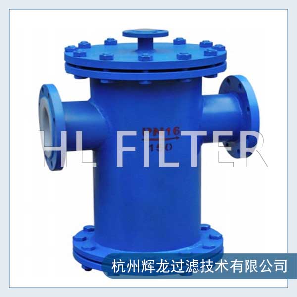 篮式过滤器(Basket type filter),主要由接管、主管、滤篮、法兰、法兰盖及紧固件等组成。当液体通过主管进入滤篮后,固体杂质颗粒被阻挡在滤篮内,而洁净的流体通过滤篮、由过滤器出口排出。当需要清洗时,旋开主管底部螺塞,排净流体,拆卸法兰盖,清洗后重新装入即可。因此,使用维护极为方便。
