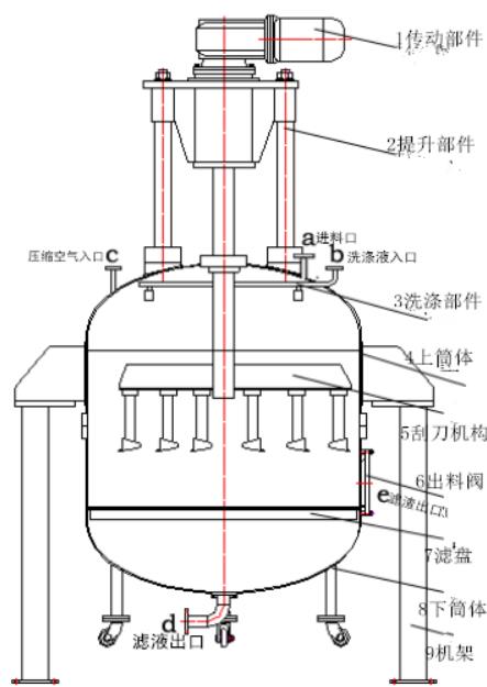 过滤洗涤丁燥二合一是在一密闭容器内先后完成搅拌、反应、过滤、清洗、脱液等工艺过程。具有结构简单、工艺流程简化、生产效率高、无交叉污染、物料更换便捷,自动化程度高等特点。