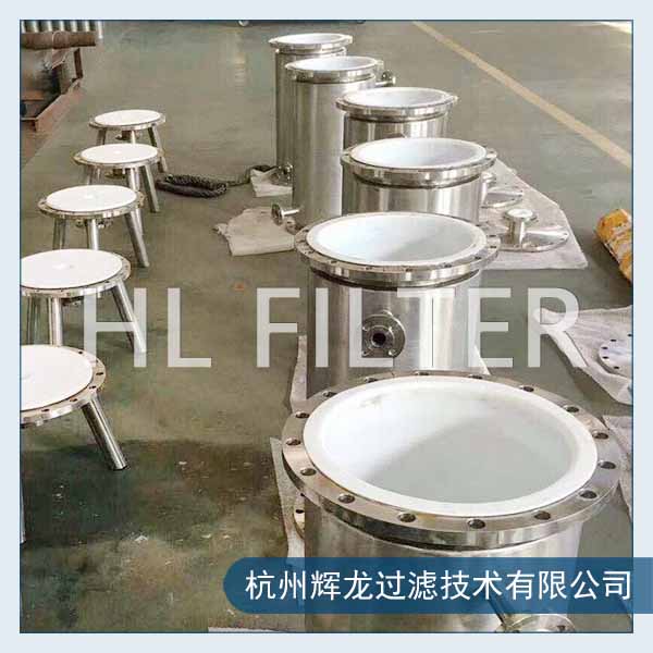 耐强酸过滤器一般指的可以耐受王水、浓硫酸、浓盐酸、浓硝酸等产品的过滤器,接触溶液部分的材质选用衬氟或偏聚氟乙烯,前者耐温可以达到150℃,后者耐温120℃.