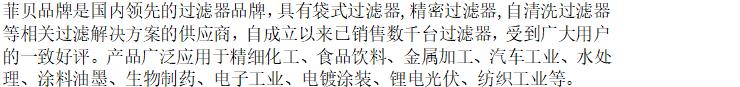 广泛运用于化工厂、电泳涂装、工业废水处理、微电子、电厂电站、纺织染料、造纸工业、纯水预制、油漆油墨、啤酒、药业、食品饮料、牛奶、糖水糖浆、水果汁、植物油、化妆产品、化学品、石油制品、电镀液、热溶剂、乳胶、树脂、超声波清洗器、高压清洗机、工业纯水、涂料、树脂、油墨、蜡类等领域的预过滤或精密过滤。