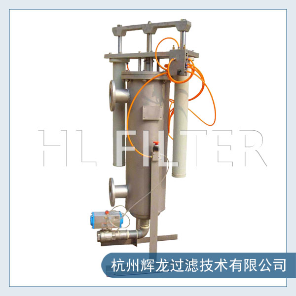 ·工作原理:一个带有弹簧的清洗圆盘,在滤芯内部上下运动来清除聚集在滤网内表面的滤后残渣。滤液从上到下,从滤芯内到外流出,滤渣被截留在过滤网上,然后被清洗圆盘刮至集渣室。在清洗圆盘下行冲程过程中,任何残留的滤渣都被去驱至集渣室,从而很容易被彻底清除。在清洗圆盘上行冲程过程中,滤渣从滤网表面被去除。系统工业流体(带压)驱赶滤渣穿过清洗圆盘至集渣室。